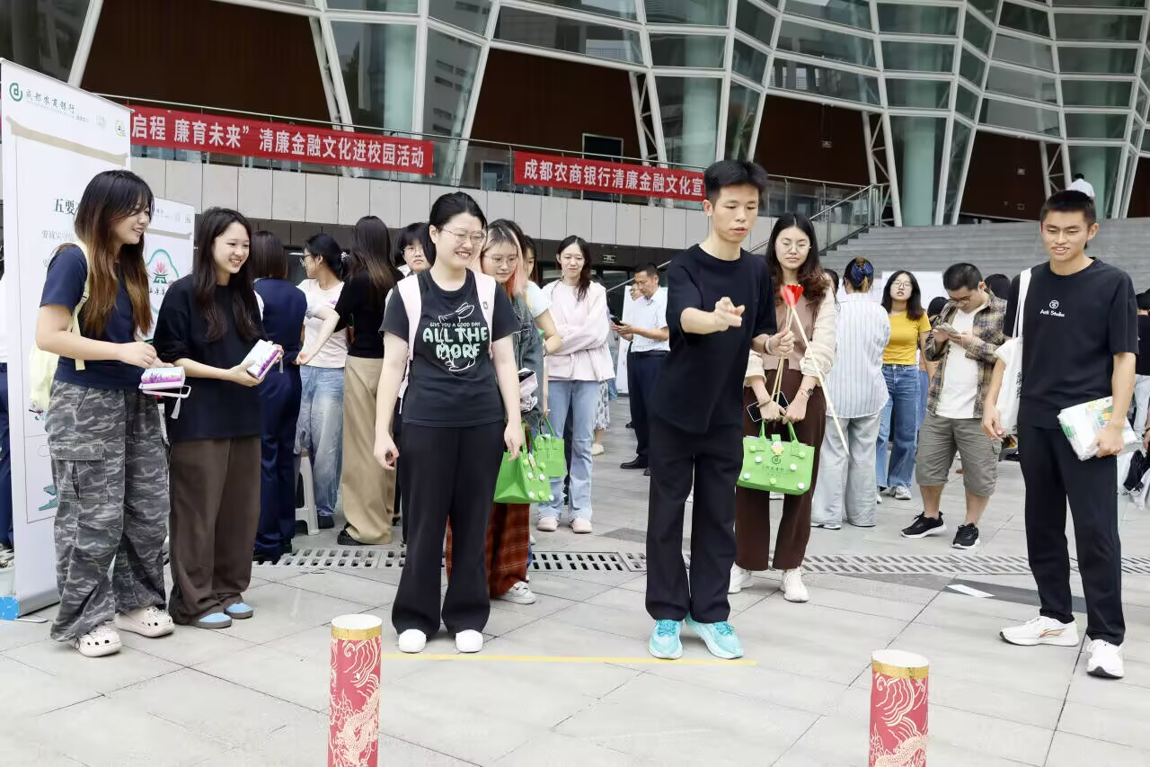 活动现场,成都农商银行设立了宣传展台,通过展示清廉主题海报、发放廉洁教育手册、开展互动答题等沉浸、互动形式,围绕清廉金融核心内容组织体验活动,重点讲解了金融领域廉洁风险防范知识,帮助学生系好廉洁从业的“第一粒扣子”。