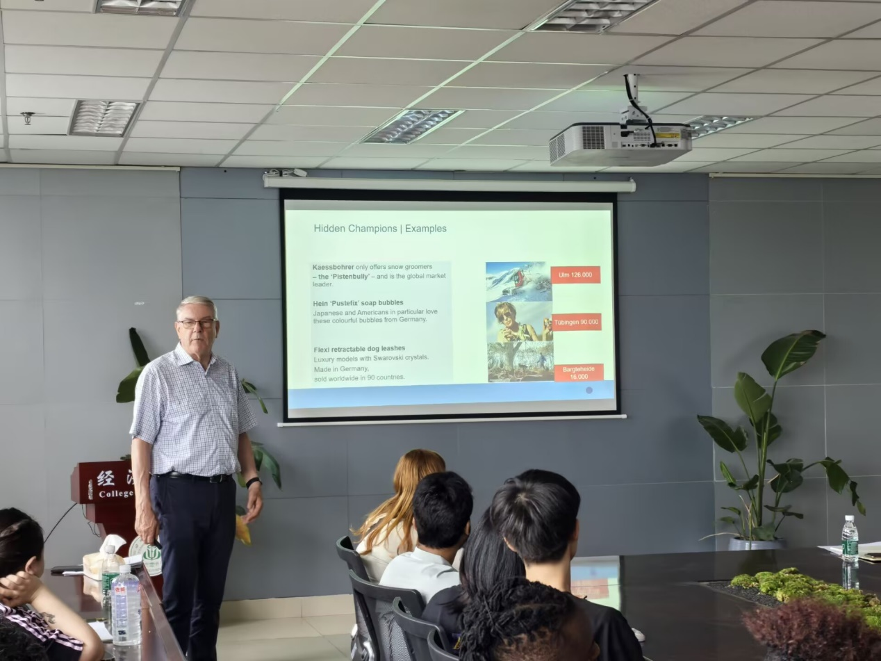 讲座中,迈克尔·韦伯博士深入剖析了德国专业公司和制度支持推动农村经济稳定与农业技术适应的路径与原理。他首先介绍了“隐形冠军”这一概念,指出这些企业多位于德国农村地区,是各自细分市场的领导者,它们高度重视创新、员工专业技能与客户导向,通过保障就业、促进地方经济发展及推进数字基础设施建设,为地区稳定做出了重要贡献。