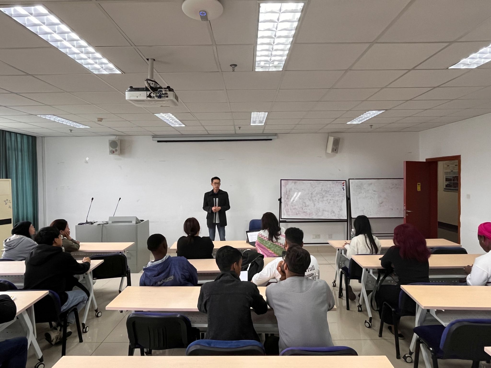 卢昱光在进行了简单的自我介绍后,用流利的英语向同学们讲述了自己的学习和工作经历,并重点介绍了传统外贸和跨境电商工作内容,主要平台,业务流程等,分析了该行业发展趋势和市场前景。