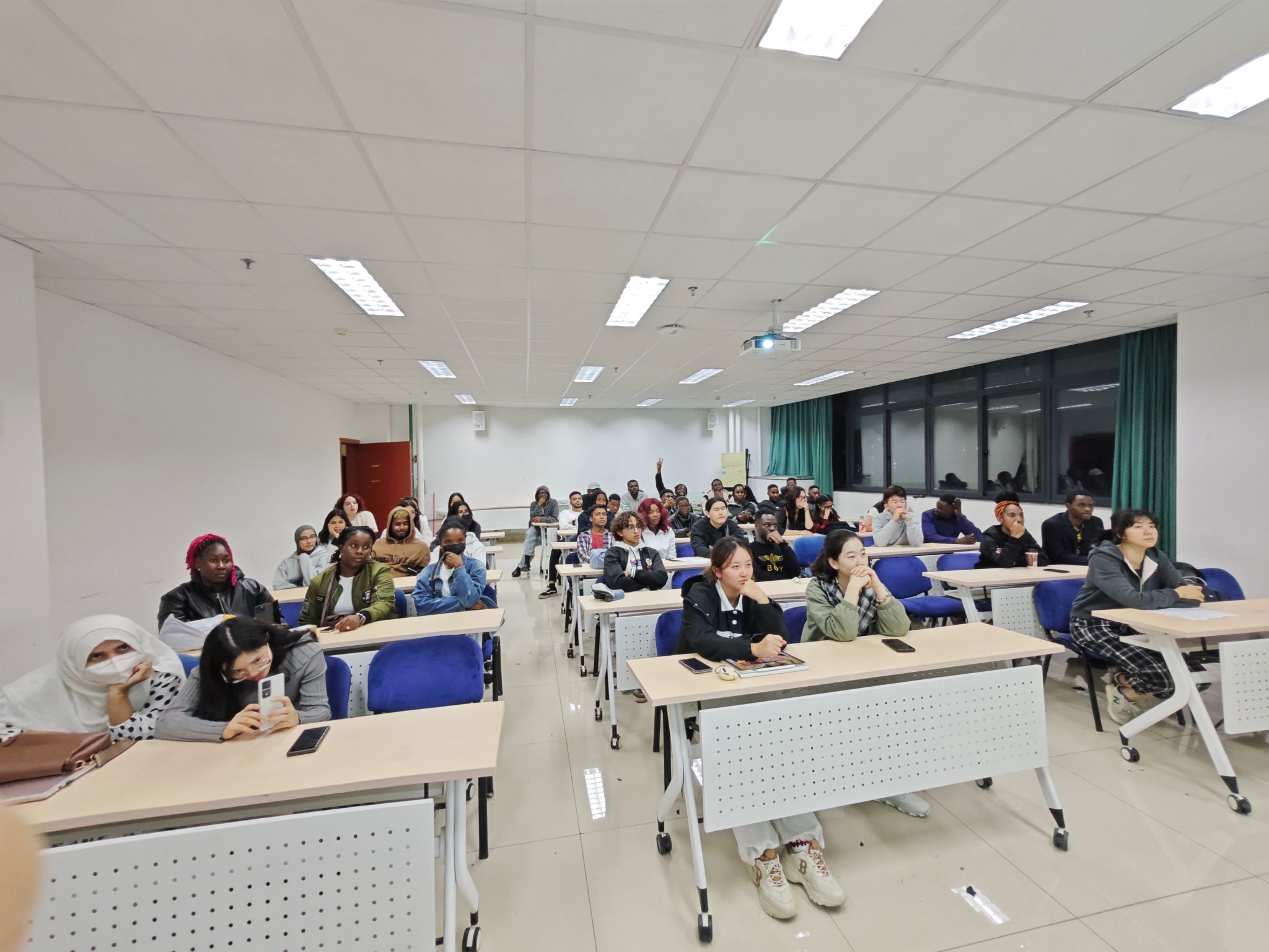 1018日,beat365正版唯一官网新生运动会留学生动员大会在71407教室成功举行。此次动员会旨在增强留学生群体的凝聚力和团队合作意识,鼓励留学生们积极参与,展现他们的热情与活力。国际经济与贸易2023级全英文专业本科留学生35名、学院硕博生11名参加了会议。