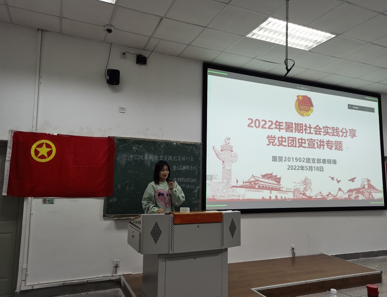 5月18日中午,我院团委实践部在4-A108教室举办了2022学年暑期社会实践红色文化暨公益助教专场分享培训会。学院团委书记兼党委办公室副主任钟贝,2020级应用经济学与林业经济管理硕士研究生党支部书记陈豪,学院第六届主席团成员张成志,校第八期“青马工程”培养班学员、学院第七届团委学生兼职副书记唐晓臻,学院第七届团委学生兼职副书记马宪瑶出席本次分享培训会。近200名同学参加了本次分享培训会。