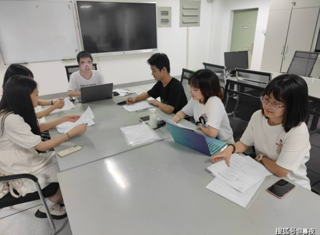 图为“外卖绿色联盟”成员经过一天的调研之后,汇聚在会议室里进行总结汇总