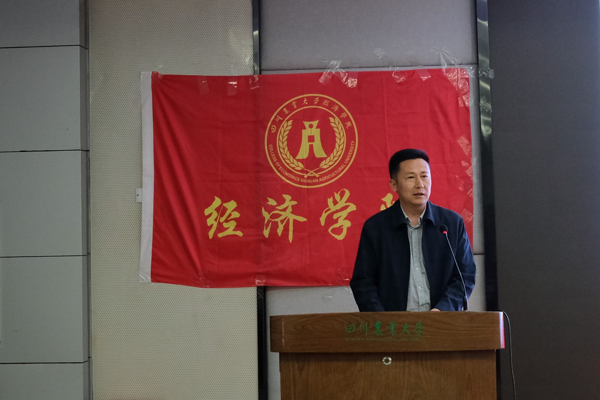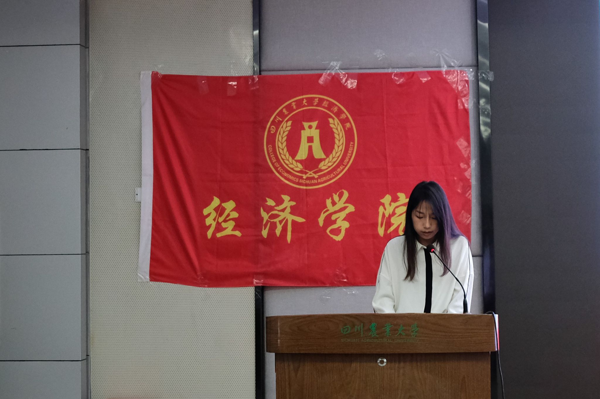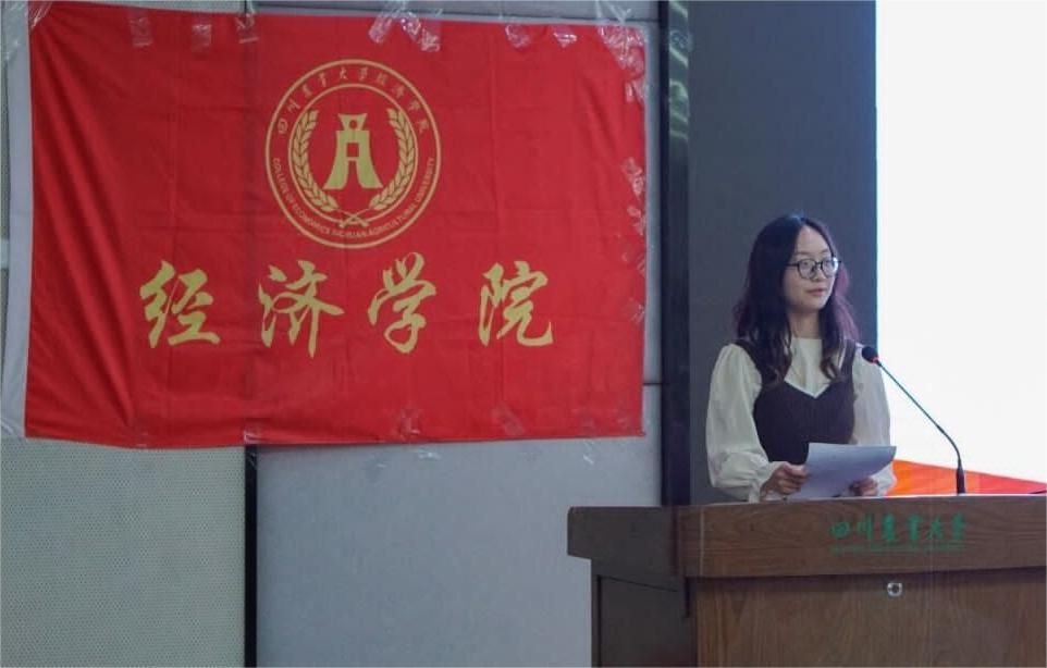 优秀学生代表马瑞遥同学分享自己在大学中的学习和学生工作经历,并呼吁:“全体经院学子,始终以奋进的姿态做新时代筑梦路上奋斗者、奉献者。以‘厚德博学’之行在川农的沃土上做出一番事业,以‘经世济民’之举为民族复兴、祖国建设注入青春的力量。”