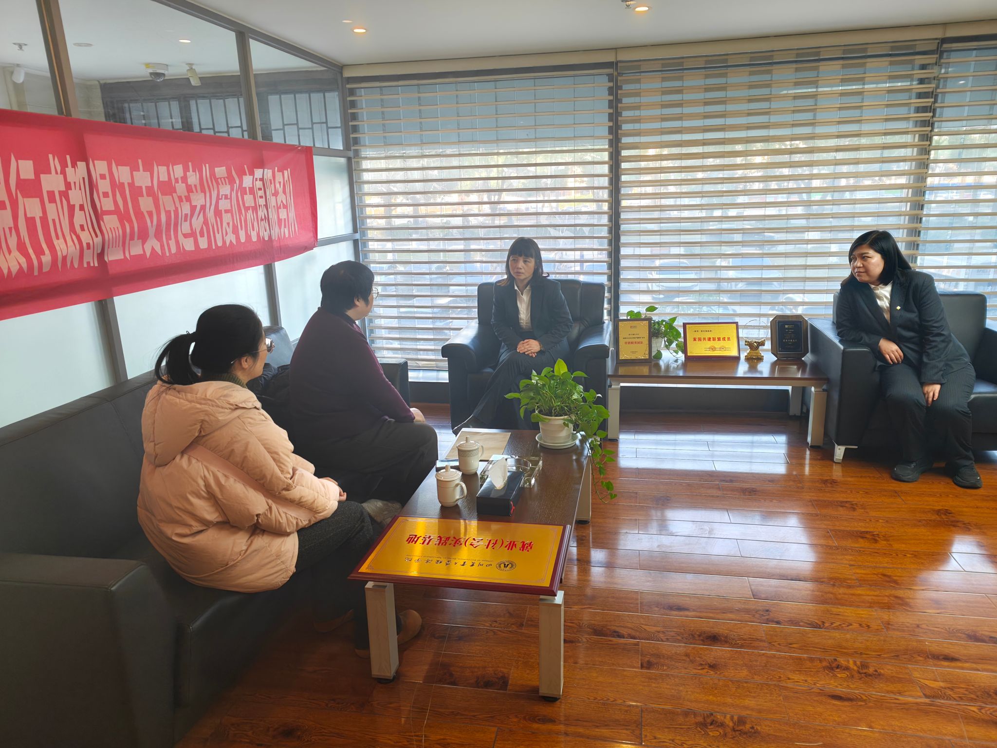 1月8日,学院党委办主任朱玉、就业秘书程远蝶一行前往哈尔滨银行温江支行,开展校企合作洽谈,并成功举行“就业(社会)实践基地”签约授牌仪式。哈尔滨银行温江支行行长王蕊、副行长郑晓青出席座谈交流。