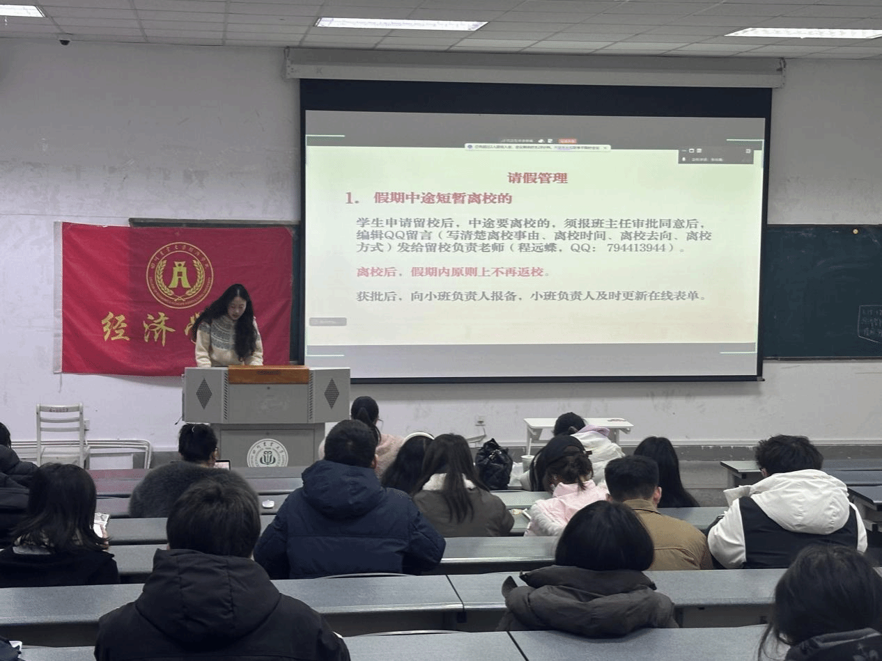会议伊始,学院就寒假留校期间的日常管理要求进行详细部署。自规定时间起,留校学生正式转入假期管理模式,小班负责人将每日开展寝室点到工作,确保学生在校安全可控。同时,会议强调留校学生不得擅自在外住宿,需严格遵守法律法规与校规校纪,保持与小班负责人、班主任及家长的密切沟通,遇突发情况立即与负责老师联系,为同学们的留校生活保驾护航。