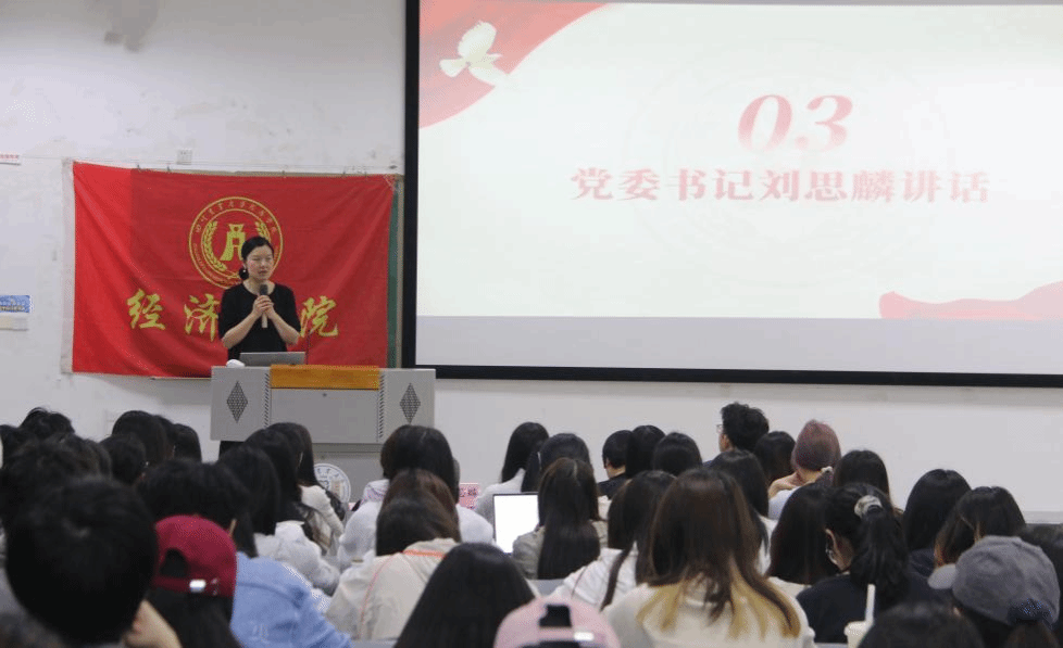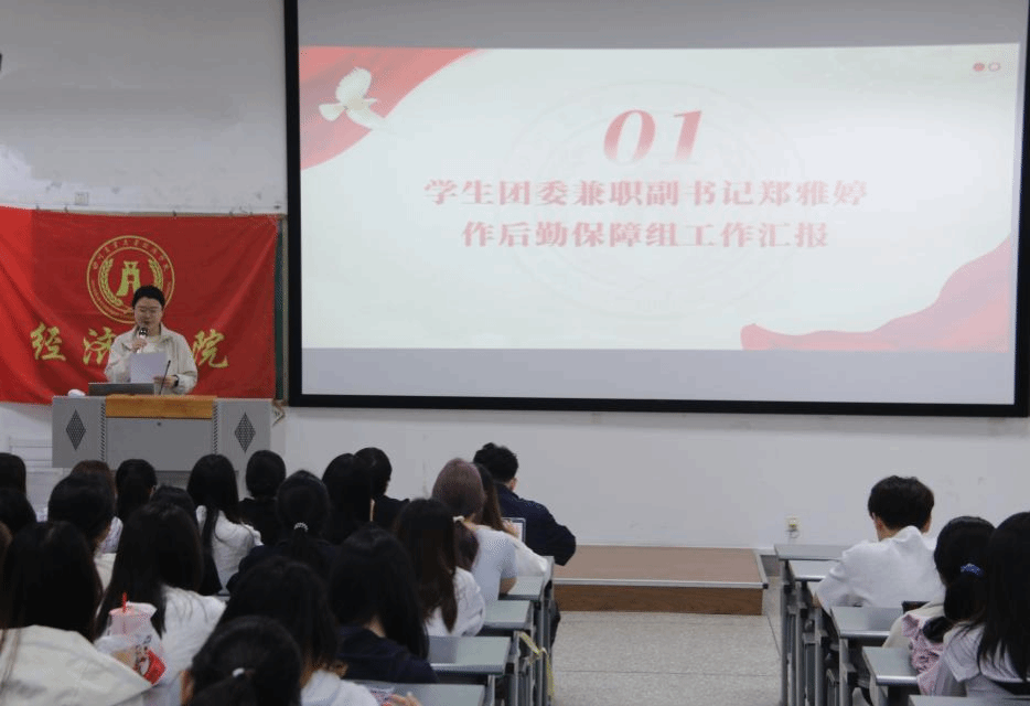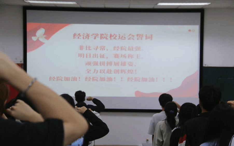 大会最后,全体人员起立,庄严宣誓:“非比寻常,经院最强。明日出征,赛场称王。顽强拼搏展雄姿,全力以赴创辉煌!经院加油!”