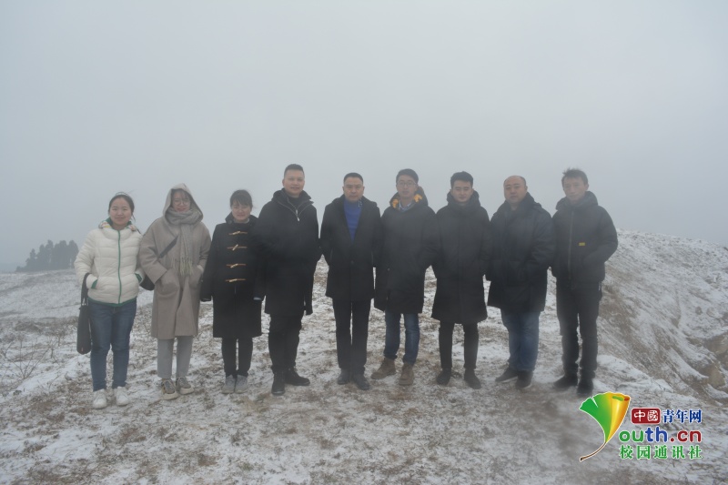 来到了新场乡海拔最高的桃花村,恰巧遇到了投资当地的青年企业家,得知同学们的来意后,企业家便与同学们一起来到了山顶的种植基地,大雪后的种植基地白雪皑皑,与整齐划一的树木相呼应,甚为壮观。(中国青年网通讯员 姜磊摄)
