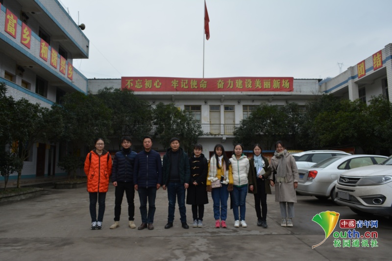 在实践活动结束之后,同学们来到了新场乡政府,与当地政府的人员沟通,并对乡长做了采访,最后,新场乡调研队全体成员和乡长、书记一起合影留念。(中国青年网通讯员 徐姗摄 )