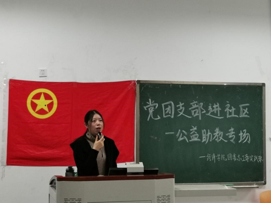 陈易女士介绍了公益助教的相关情况。她提到,同学们前往铁犁村,在课余时间带着孩子们一起学习唱歌跳舞,为他们带来很多新鲜事物,对他们的成长有着很重要的帮助,更是展现了经院学子的“厚德博学,经世济民”的责任与担当。