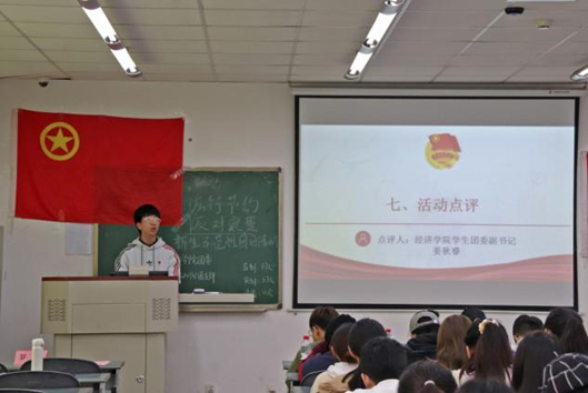 学生团委副书记姜秋睿同学对此次示范性团日活动做出点评,并向新生团支委提出开好团日活动的三点建议。