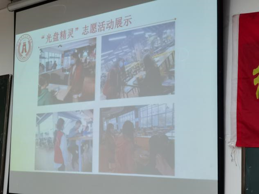 观看团团说唱视频后,金融201902团支部刘秋杞同学向大家分享了团支部于食堂开展的“光盘小精灵”志愿活动。在志愿活动中,金融201902团支部成员担任光盘督导员,鼓励大家践行光盘行动,反对餐饮浪费,助建节约型校园。
