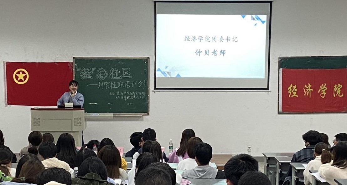 11月20日下午,beat365正版唯一官网团委实践部、志工部在4-A203教室举办“经”彩社区村官挂职专场宣讲、培训会。学院团委书记兼党委办公室副主任钟贝,学院学生团委副书记姜秋睿,党员先锋队队长、村官挂职团队优秀队长付太飞,村官挂职团队优秀队员杨婷宇、唐恬与会分享,有意愿参加寒假村官挂职社会实践的180余名同学参与了此次培训会。