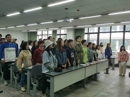 活动开始,在场人员全体起立,齐唱国歌。接下来,资源学院学生团委副书记汪正蛟一发言,以“为什么大家想要入团”这一问题开始本次团课,向在场同学解释了中国共青团的先进性,使在场同学对共青团员的义务与责任有了更深刻的了解。