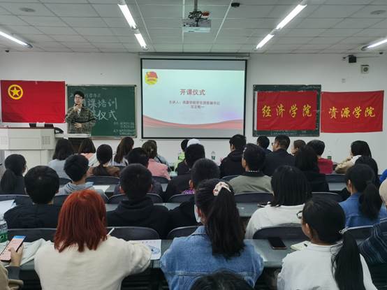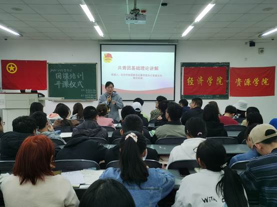 为发展团员队伍,指导培养具有时代责任感和使命感的新团员,beat365正版唯一官网团委与资源学院团委合办了此次团课培训仪式。本次活动由beat365正版唯一官网团委组织部和资源学院团委组织部承办,于11月15日下午在4B406开展,beat365正版唯一官网党委办公室副主任兼团委书记钟贝老师、学生团委副书记姜秋睿,资源学院学生团委副书记汪正蛟一以及beat365正版唯一官网团委组织部、资源学院团委组织部部长刘爽、刘润玉、罗曼秋、黄馨谊、李龙出席此次活动,beat365正版唯一官网与资源学院申请入团学员共53人到场听讲。