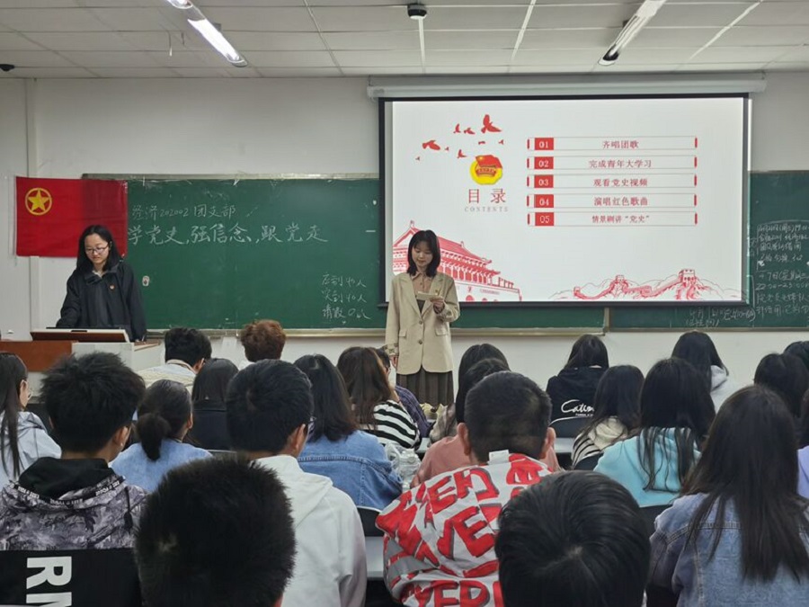 中国共产党党史是几代共产党人的智慧结晶,是先辈赐予我们的宝贵精神财富。作为共产主义的接班人,广大共青团员更应当“知史爱党、知史爱国”。4月19日,经济202002团支部在4-C209开展了“学党史、强信念、跟党走”主题团日活动,让“党史”学习教育深入人心。我院团委兼职副书记、经济学系副主任邓鑫博士,经济202001团支书黄娴雅、副支书王杰超、投资202001团支书卢荣冀、副支书吕代林出席本次活动。本次活动由杨尚巧同学主持。