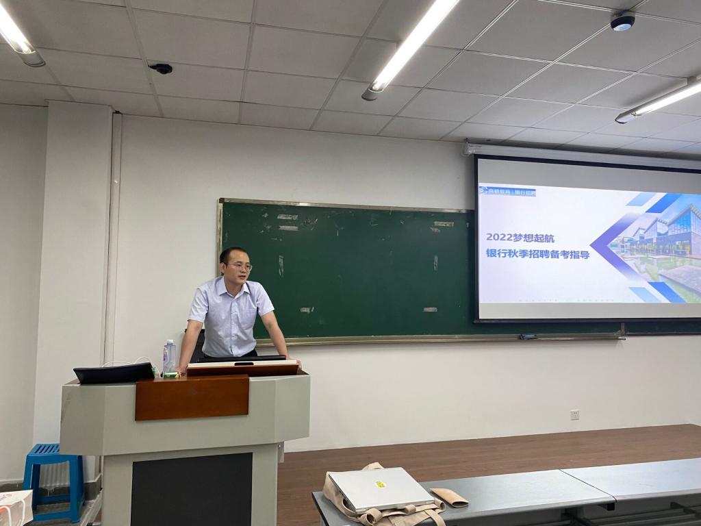 9月7日下午,beat365正版唯一官网2022届银行秋季校园招聘备考全指导公开课在四教c区205教室开展。本次课程邀请到了高顿教育核心成员王晓强老师进行讲解。