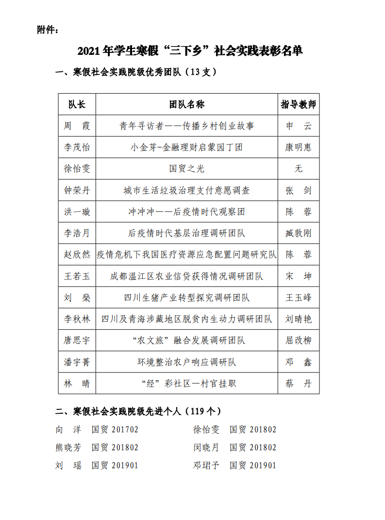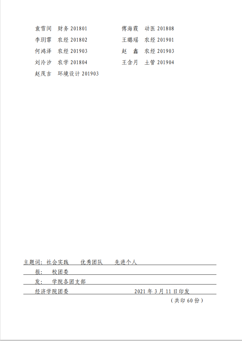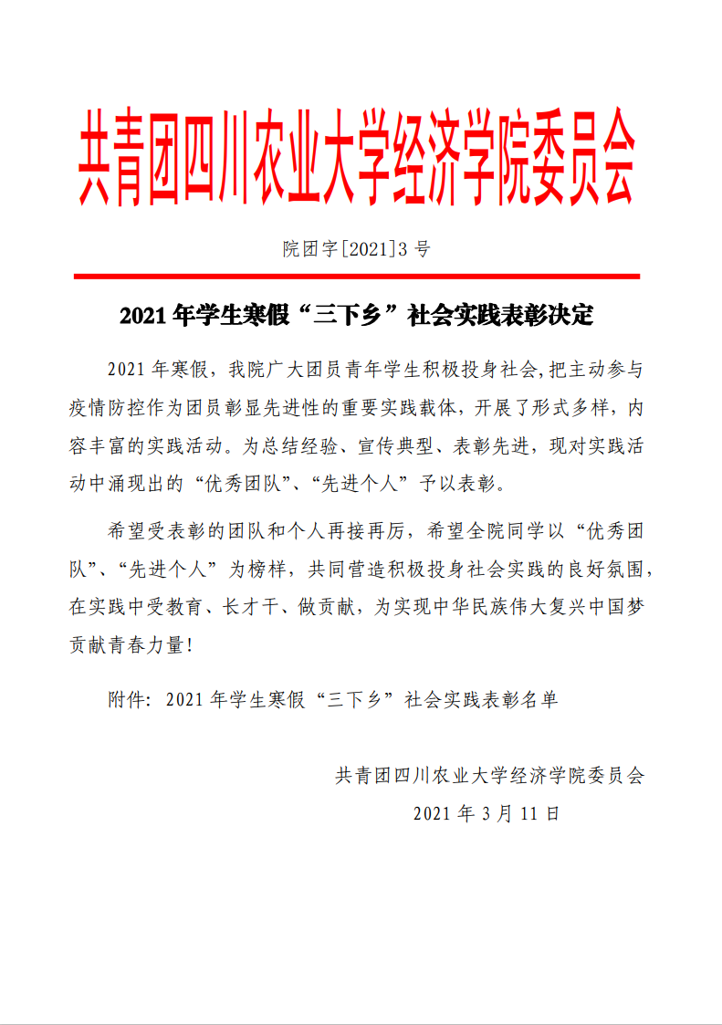 院团字[2021]3号——2021年学生寒假“三下乡”社会实践表彰决定