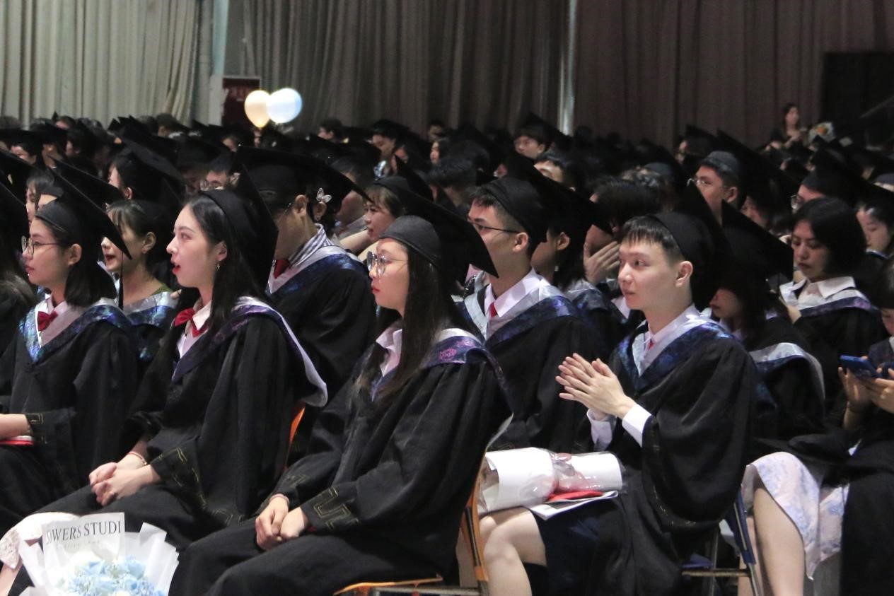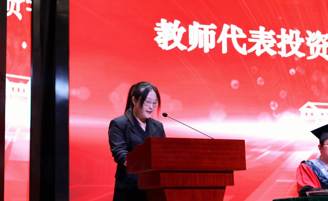 教师代表投资学系郭丽丽老师在回顾四年时光后,对同学们的未来寄予深厚的期望:“愿你们勇立时代潮头,乘风破浪、敢于争先,将‘小我’融入到祖国建设的‘大我’中去;也愿你们找到自己人生的价值和意义,找到自己的幸福!”