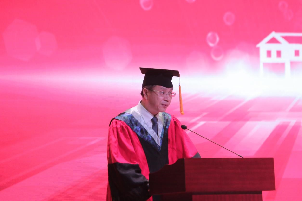 刘登才副校长宣读学位评定委员会关于授予学士学位的决议后,主席台就座的领导和老师为490名毕业生授位并颁发学位证。
