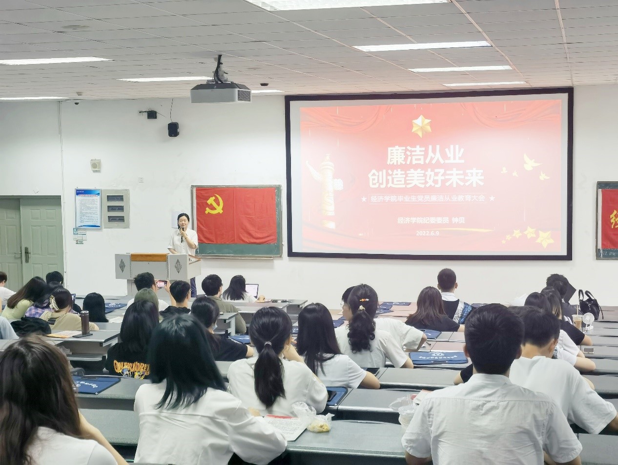 为筑牢毕业生党员廉洁从业思想道德防线,提高毕业生党员拒腐防变和自我保护能力。6月9日,beat365正版唯一官网在4教A202教室召开2022届毕业生党员廉洁从业教育大会。学院党委副书记、纪委书记张翅,学院团委书记兼党委办公室副主任、纪委委员钟贝,以及149名毕业生党员参加大会。