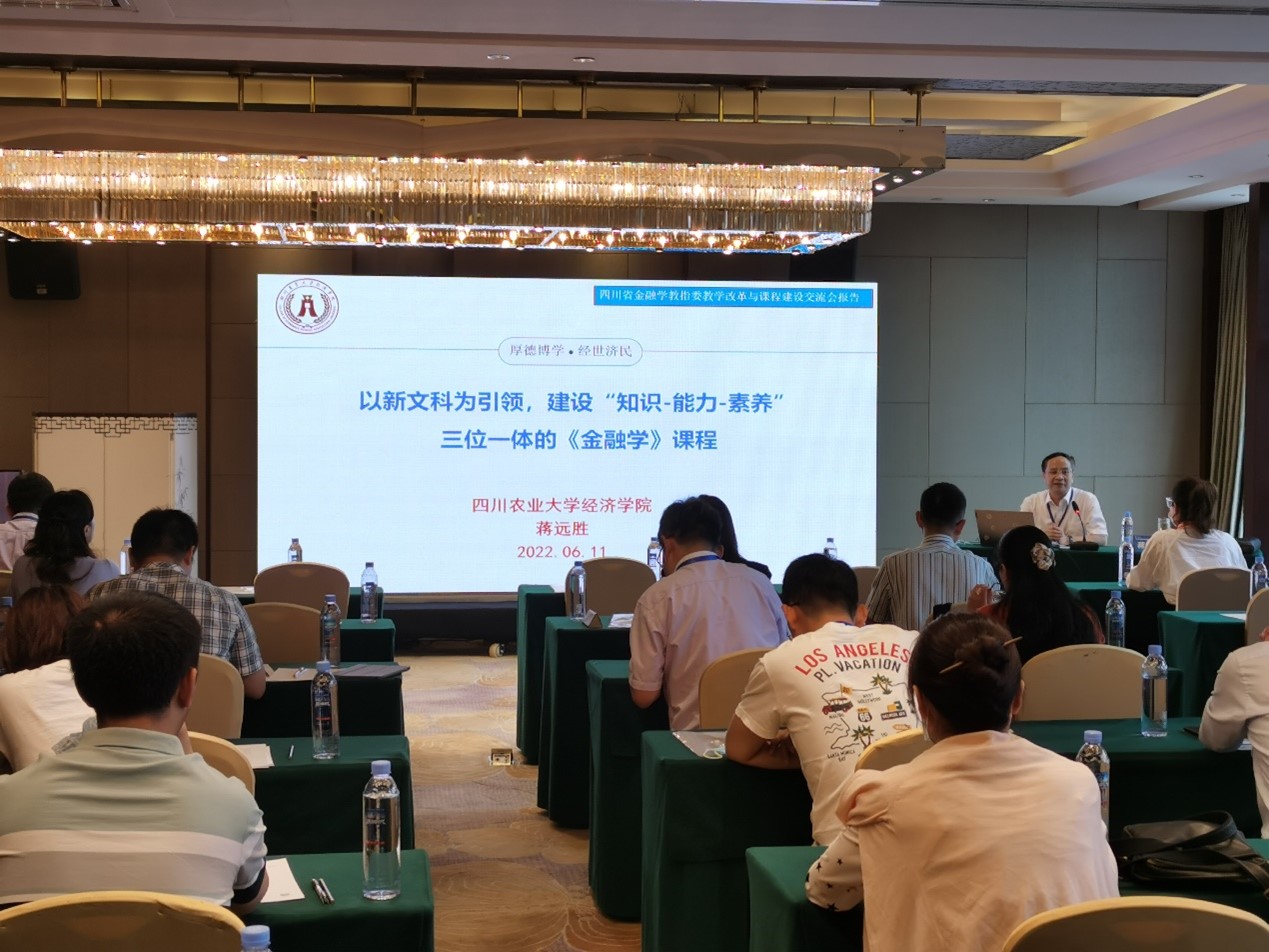 为落实《四川省普通本科高等学校教学指导委员会章程》精神,加强师资队伍建设,促进金融相关专业教师职业能力提升,由四川省普通本科高等学校金融学类专业教学指导委员会(下简称四川省金融教指委)和西南财经大学主办,西南财经大学金融学院承办的“四川省金融教学指导委员会教学改革与课程建设交流会”于 2022年6月11日——2022年6月12日在成都费尔顿大酒店举行。四川省金融教指委主任委员、西南财经大学党委副书记、校长卓志致辞,四川省金融学会副会长、我院院长蒋远胜出席研讨会,并做主题报告——以新文科为引领,建设“知识-能力-价值”三位一体的《金融学》课程。