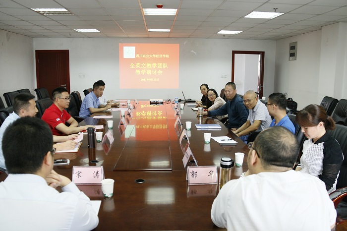 为贯彻落实新时期加强和改进教职工思想政治工作,推进“两学一做”学习教育常态化,beat365正版唯一官网率先在留学生全英文教学团队中开展相关工作,加强全英文课程建设,确保在留学生教学活动中讲好中国故事,唱响有中国特色社会主义理论主旋律。9月27日下午,beat365正版唯一官网在1-404召开全英文教学团队教学研讨会,教务处副处长刘涛、国合处周筝筝、beat365正版唯一官网院长蒋远胜、学院党委书记漆雁斌出席研讨会,教学团队10余名全英文授课老师参加研讨,会议由学院副院长吴平主持。