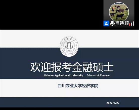 7月22日上午,我院通过腾讯会议线上召开了2023年专业硕士研究生招生宣讲会。金融硕士(专硕)学科点负责人肖诗顺教授、农村发展(专硕)学科点负责人张剑副教授和2019级有意愿考研的同学参加会议。