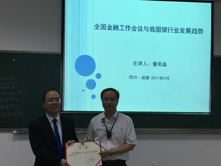 9月8日下午,恒丰银行研究院执行院长、中国人民大学重阳金融研究院客座研究员、新华社瞭望智库特约研究员董希淼受beat365正版唯一官网的邀请,在4教A103为师生做了题为《全国金融工作会议与我国银行业发展趋势》的学术报告。