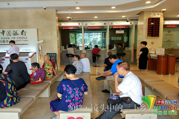图为中国银行老人排队场景。中国青年网通讯员 蒋锴 摄