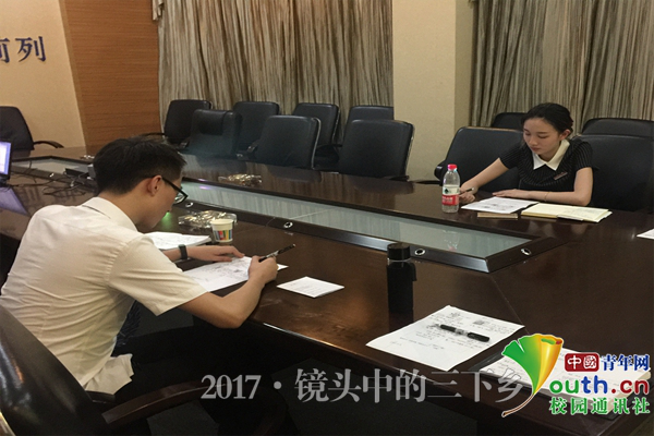 中信银行实习生分析汇总调查数据。中国青年网通讯员 谢世民 摄