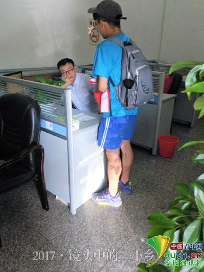 队员在农商银行了解农业类贷款情况。中国青年网通讯员 张馨予 摄