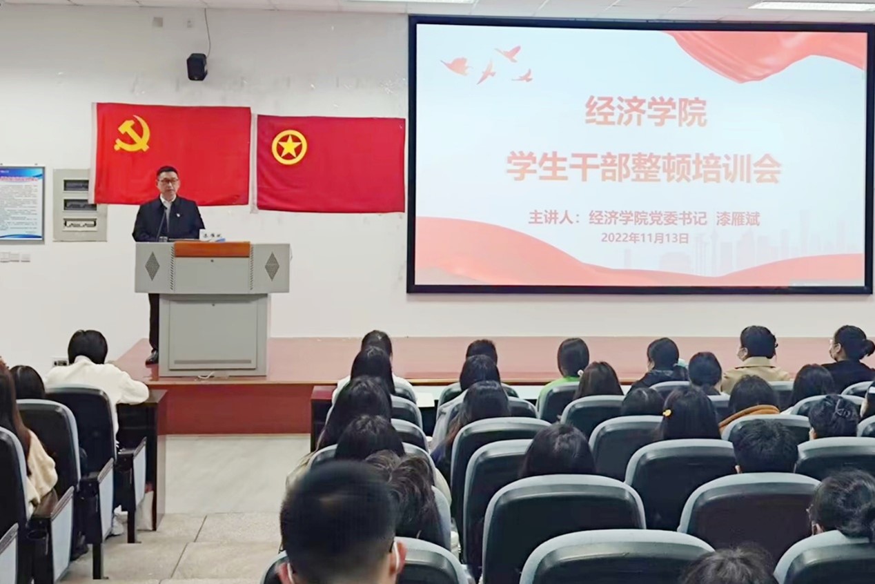11月13日,我院召开学生干部整顿教育会,学院党委书记漆雁斌作《三观正确、服务奉献、先锋模范》专题培训,学院辅导员和82名主要学生干部参会。
