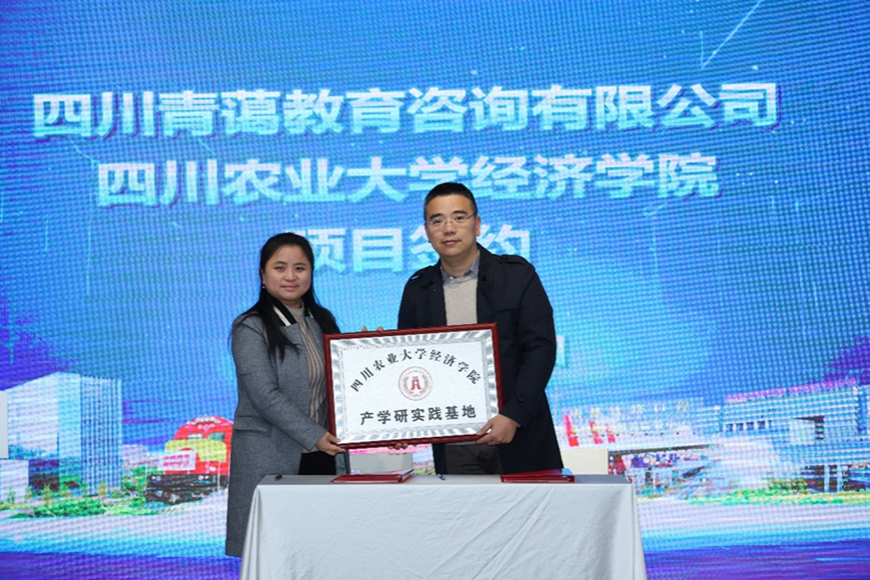 最后,双方签订了协议,举行了授牌仪式。根据协议,四川青蔼教育咨询有限公司将为我院提供学生创新性实践课程、实训基地、工作岗位、创新创业指导等校企协同育人项目。