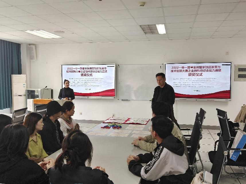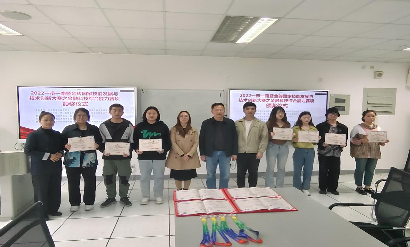 2023年4月4日,“2022一带一路暨金砖国家技能发展与技术创新大赛”之金融科技综合能力赛项beat365正版唯一官网颁奖仪式在成都校区4-C409举行。beat365正版唯一官网副院长吴平教授、金融学副系主任刘艳副教授及指导教师代表徐斌博士出席,颁奖仪式由比赛技术支持方北京知链科技有限公司项目经理陈浚瑶主持。