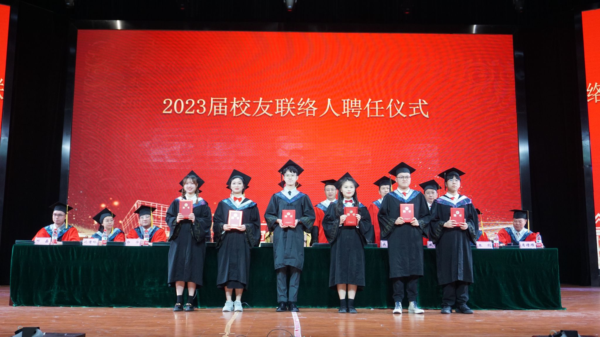 为凝聚校友力量,不断推进母校与校友共同发展,学院在本届毕业学生中,特聘了六位校友联络人,并由主席台就座的领导和老师为他们颁发校友联络人聘书。