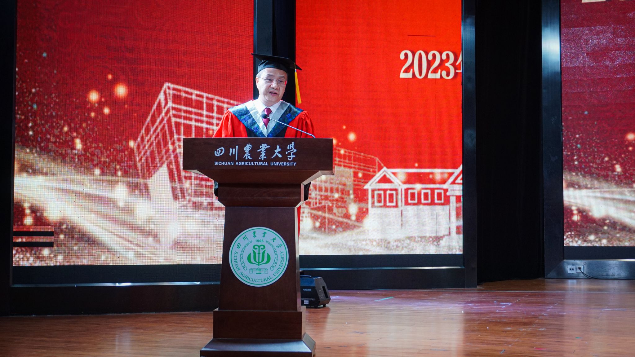 蒋远胜满怀激动地说:“我由衷地为你们的成长、进步和成绩感到高兴,为学院拥有你们这样优秀的学子而感到骄傲!”蒋远胜把“修厚德之身,创博学之才,怀经世初心,立济民远志,争做新时代优秀经济建设者,不负韶华,不负时代,不负人民!”作为对2023届毕业生的临别寄语,并提出三点期望:永怀为民报国之志,争当“经世济民”之才;持守“追求真理”之心,实践行路致远之智;秉持“学经强农”之心,勇担中华民族伟大复兴重任。