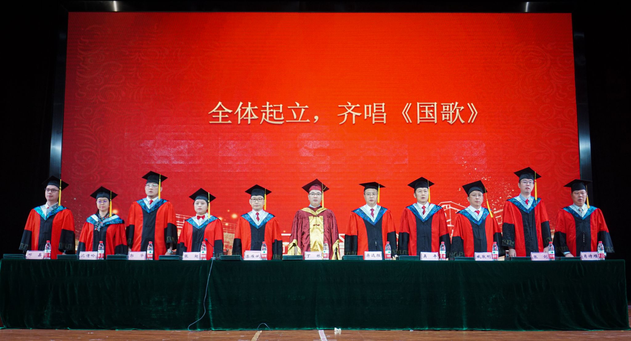 丁林副校长宣读学位评定委员会关于授予学士学位的决议后,主席台就座的领导和老师为500余名毕业生授位并颁发学位证。