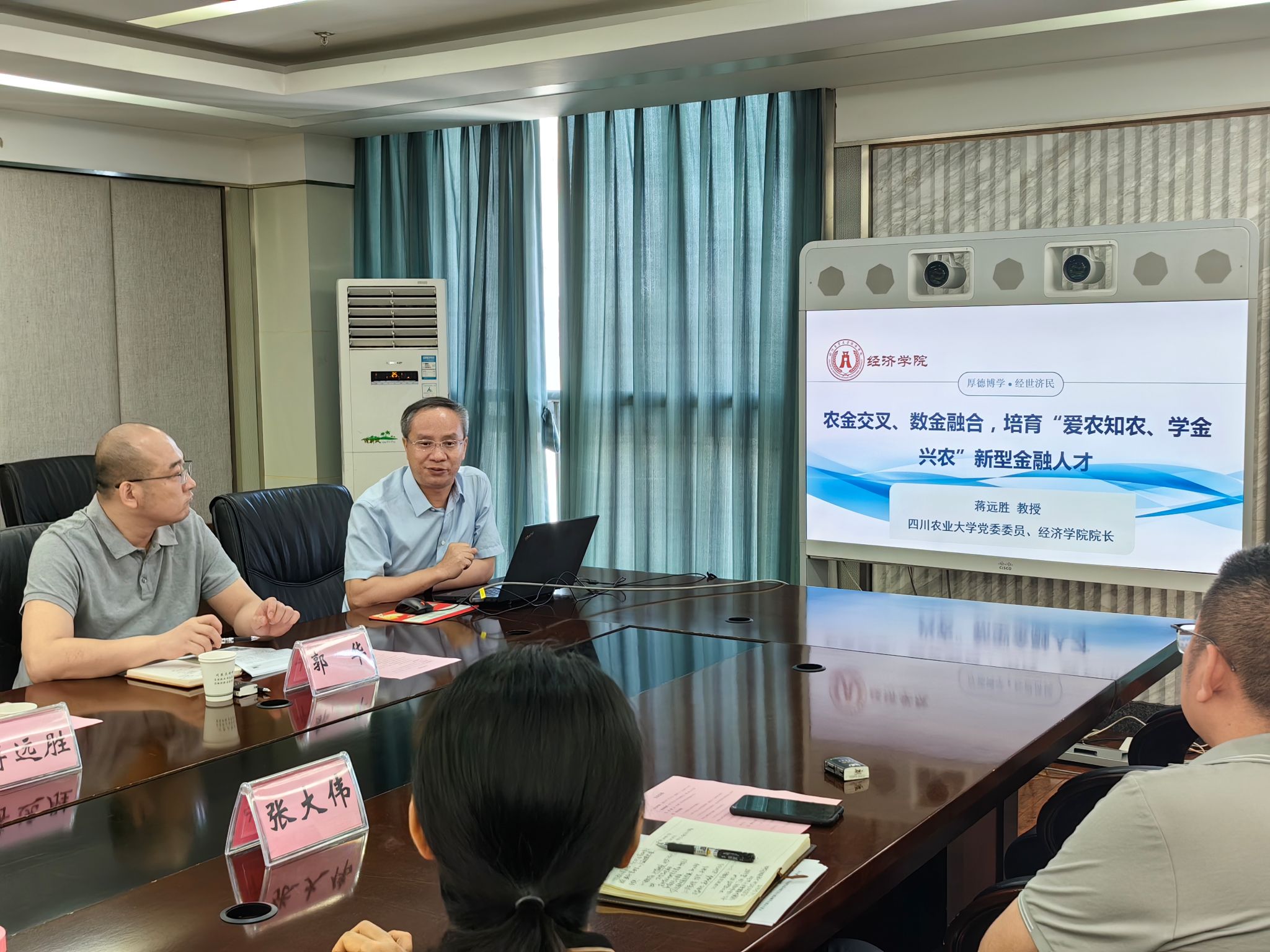 丁林代表学校致欢迎词,对四川省地方金融监管局一行来校访问和指导表示热烈欢迎。蒋远胜介绍了beat365正版唯一官网学科专业建设总体情况,并以“农金交叉、数金融合,培养‘知农爱农、学金兴农’的新型金融人才为题全面地介绍了金融人才培养情况。副教授丁昭就beat365正版唯一官网正在实施的“金融服务天府粮仓建设的改革创新研究”课题设计进行了汇报。