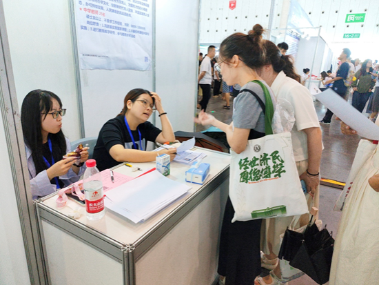 招聘会前,学院通过年级QQ群、转发微信公众号推送等方式广泛宣传,为同学们在简历优化、面试技巧等方面进行帮助,专门安排车辆接送同学,便于大家往返。招聘会现场人头攒动,气氛热烈,300余家用人单位纷纷设展,提供了涵盖经济、金融、行政等多个领域的万余个就业岗位,充分满足毕业生的求职需求。学院毕业生们着装整洁,精神饱满,根据自己的实际有针对性地咨询信息、投递简历、应聘岗位,与企业招聘人员面对面交流。大家不仅关注薪资待遇、工作环境等实际问题,更重视个人职业发展和成长空间等长远因素。企业招聘人员也耐心解答毕业生的疑问,详细介绍单位文化、发展前景及岗位要求等。招聘会上,张翅不仅在现场为学生提供实时指导,还与多家企业进行深入交流,探讨了薪酬福利、实习机会和行业发展前景等关键信息,邀请了多家企业来校参加双选会,以进一步拓宽学生的就业渠道。