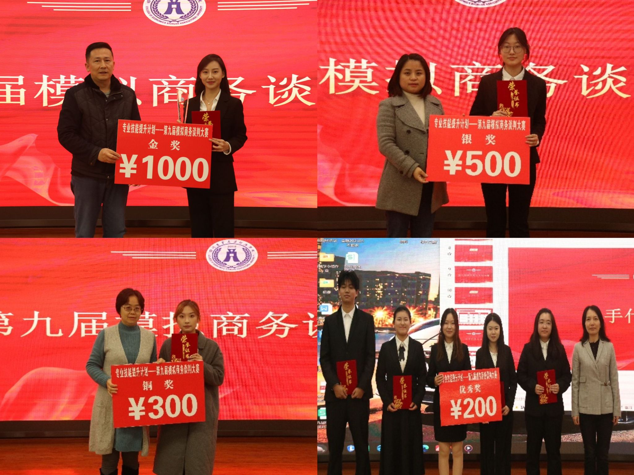 本次大赛自今年9月末正式启动以来,吸引了来自全校多个学院的50支队伍、近200位同学报名参赛,经过初赛与复赛的激烈角逐,共有8支队伍脱颖而出,进入最终的决赛环节。本次决赛邀请了国际经济与贸易系主任沈倩岭教授、国际经济与贸易系谢玉佳老师、宋涛老师以及国际商务谈判课程组丁昭老师担任评委;学院副院长吴平教授,学院党委副书记、纪委书记张翅老师出席大赛颁奖仪式。