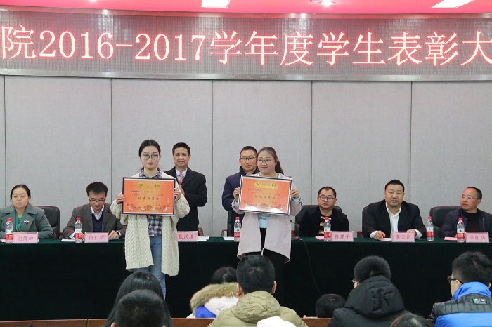 大会对金融2015级4班等2个校级“优秀班集体”,国际经济与贸易2015级2班等4个院级“优秀班集体”,沈栩航“优秀学生标兵”获得者,杨曼璐等3名“国家奖学金”获得者,胡星辰等75名“国家励志奖学金”获得者,谭苏杭等96名“优秀学生”获得者,唐琴雅等51名“优秀学生干部”获得者艾思静等98名“社会捐资奖学金”获得者,易珂等学院10名“优秀学生干部奖学金”获得者,予以表彰。