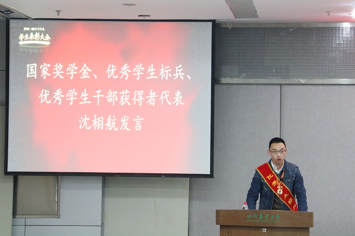 “beat365正版唯一官网这个大家庭教会了我们满怀期待,教会了我们心存敬畏,更教会了我们追求卓越”。“优秀学生标兵”、“国家奖学金”、“优秀学生干部”获得者,来自经济2014级2班的沈栩航讲述了促使他成长成才的三大法宝:“感恩、责任、未来”。