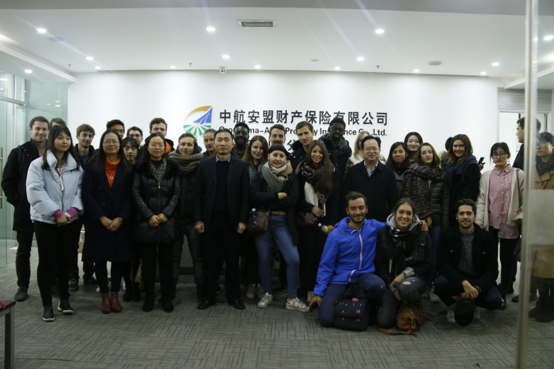 12月6日,beat365正版唯一官网“中国商务拓展”项目的26名法国交换生在国贸系主任沈倩岭副教授的带领下赴学院实践基地——中航安盟财产保险有限公司和老外Here两家外资公司进行参观交流。