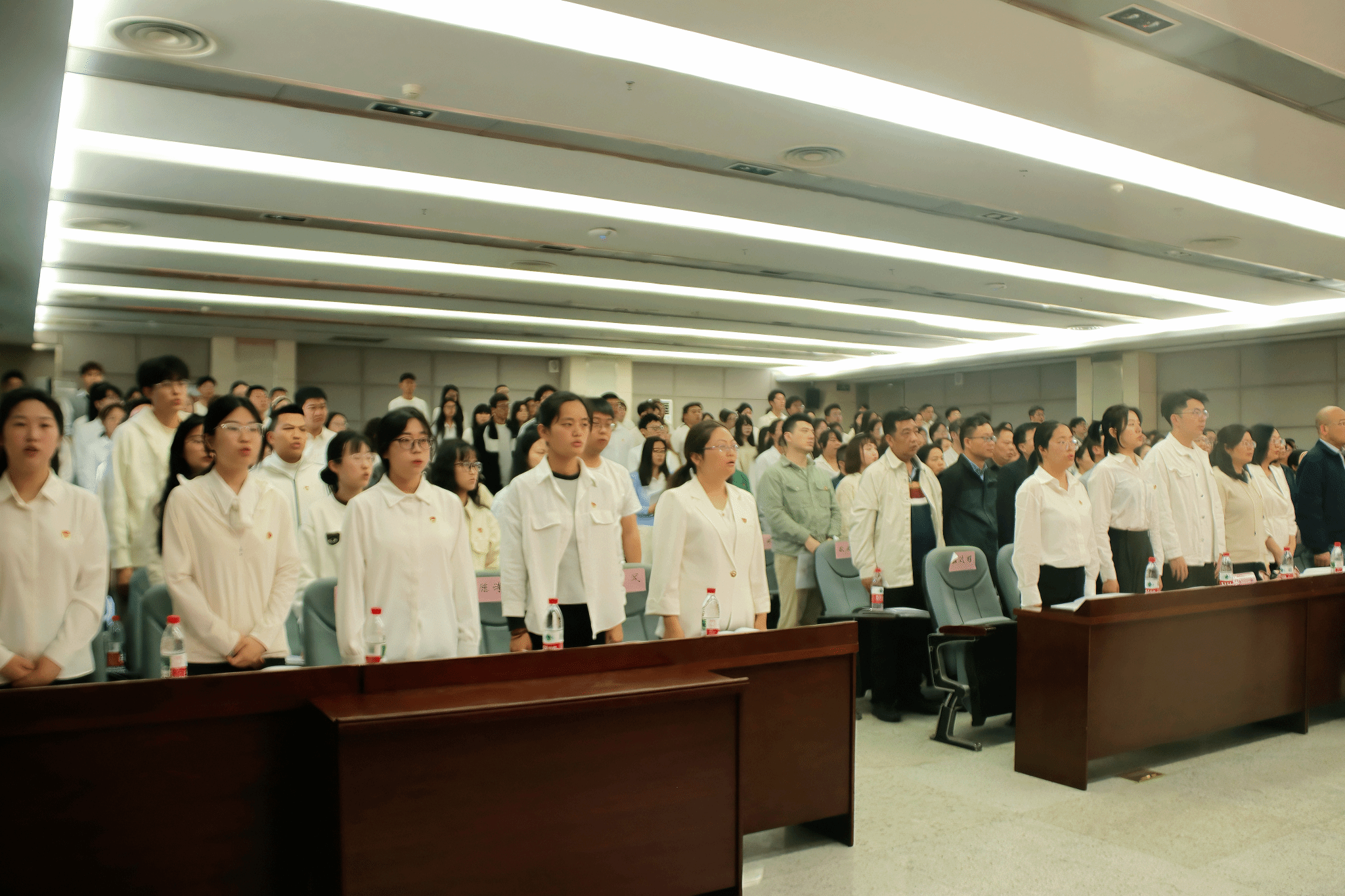 大会在雄壮的《中华人民共和国国歌》声中正式开幕,全体党员起立奏唱国歌,神情庄重、精神饱满,共同感受大会的庄严氛围。