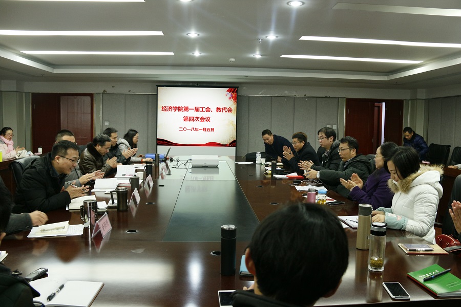 1月5日,学院第一届工会、教代会第四次会议在1教408会议室召开。院长蒋远胜,党委书记漆雁斌,党委副书记兼工会主席何仁辉,副院长吴平,教代会主席兼工会副主席李阳明,以及全体教职工出席了会议,会议由何仁辉主持。
