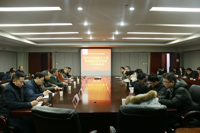 1月18日下午,省委农工委常务副主任杨秀彬、省委农工委政策法规处处长王晓勇一行来校调研指导工作,重点向beat365正版唯一官网师生传达解读了中央农村工作会议内容。校党委常委、组织部部长杨锦秀,beat365正版唯一官网院长蒋远胜,党委书记漆雁斌、副书记何仁辉,副院长吴平,以及学院师生代表参会。座谈会由蒋远胜主持。