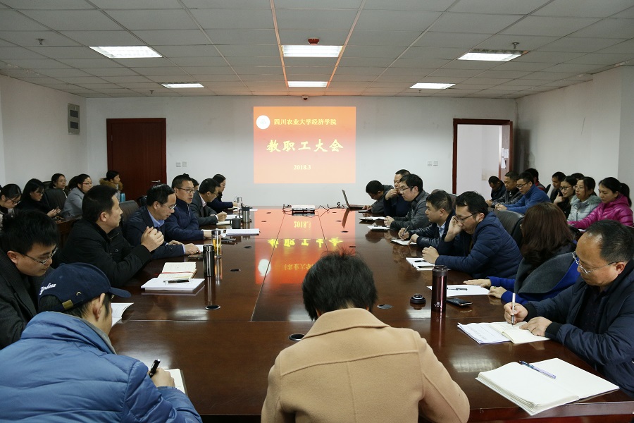 蒋远胜对学院2018年工作进行全面部署,提出了五项工作要点。一是全面进入迎接本科教学审核评估的紧张状态,以高度的责任感和强烈的事业心完成本科教学审核评估工作。二是进一步加强制度建设,完善对教学、科研的高级别项目申报和高水平成果的奖励制度,在年终绩效考核中进一步平衡好教学、科研、社会服务和管理服务等各项工作,进一步提升我院依法治院、依规办院的科学化水平。三是强化研究生导师第一责任人制,提升研究生导师业务素质。以招生宣传和导师培训为抓手,进一步把学科建设责任落实到系上,尤其是国贸系要千方百计保证好留学生的教学质量。四是继续突出科研的意识和效率。提高国家两大基金课题申报的质量和命中率,加强“一所两中心”建设和新型智库建设,试行专职科研人员目标管理。