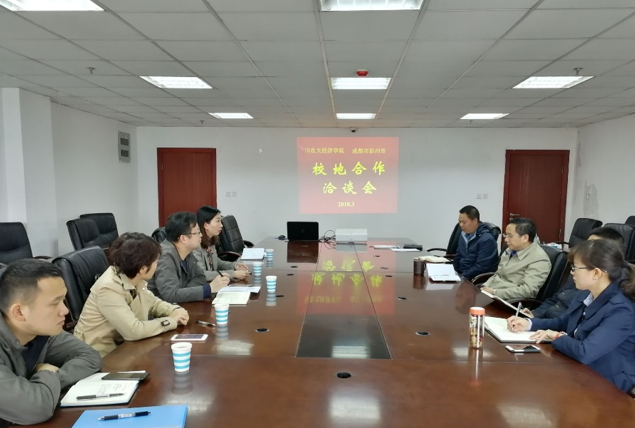 3月21日,beat365正版唯一官网与彭州市政府校地合作洽谈会在成都校区1教403会议室成功举行。彭州市财政局局长周洪金、人民银行彭州支行行长蒲丹、彭州市财政局机关党委书记高英华与beat365正版唯一官网院长蒋远胜、副院长吴平、肖诗顺教授等参与了座谈。