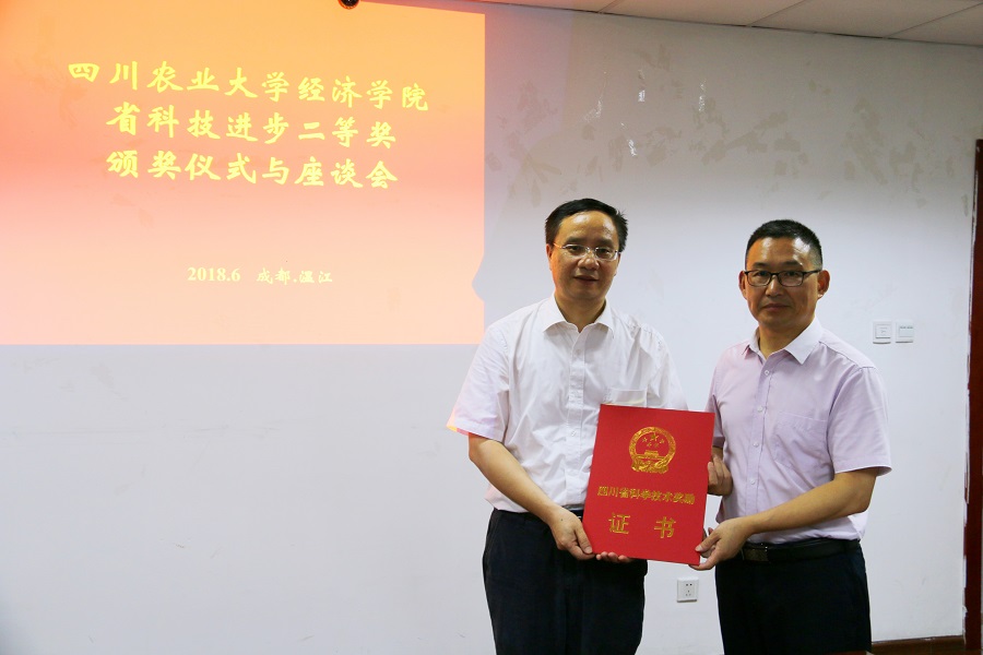 据悉,由蒋远胜院长主持完成的四川省科技进步二等奖获奖成果“新型农村合作医疗的需求理论、管理制度和公共政策”是beat365正版唯一官网建院以来获得的第一项省级科技进步奖二等奖,对促进我院科研工作再得硕果,再攀高峰具有积极的影响作用。会后,漆雁斌书记、吴平副院长为课题负责人蒋远胜院长及课题组老师颁奖留影。