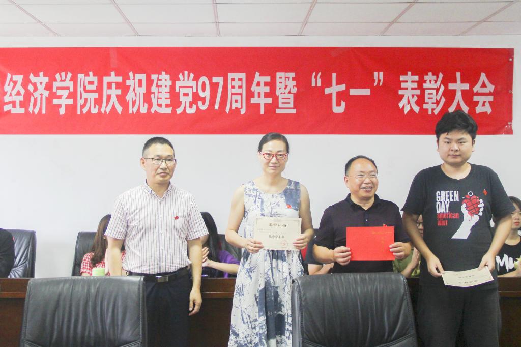 会上,吴平同志宣读了《关于表彰2017-2018年度先进集体和先进个人的决定》,金融学系教工党支部等3个党支部被授予“优秀党支部”荣誉称号;经济学系教工党支部开展的“抓党风·强师风·促教风·育学风”党日活动被授予“优秀党日活动”荣誉称号;教工党支部开展的“备战教学评估,提升教学质量”等5个党日活动被授予“党日活动积极参与奖”荣誉称号;何思妤等7位同志被授予“优秀共产党员”荣誉称号;王玉峰等4位同志被授予“优秀党务工作者”荣誉称号;严中成等3位同志被授予“优秀学生党支部书记”荣誉称号;张椿丹等20位同志被授予“优秀党建学生干部”荣誉称号。